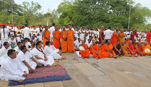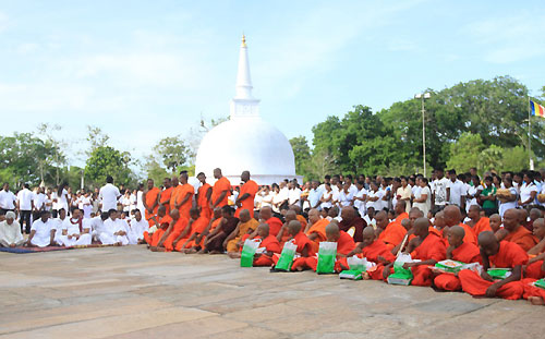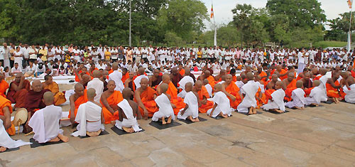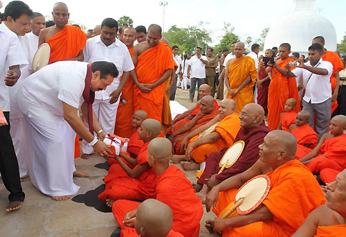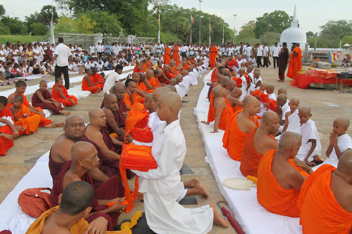 President Rajapaksa participates in an ordination ceremony of 75 Buddhist monks at Ruwanweli Seya