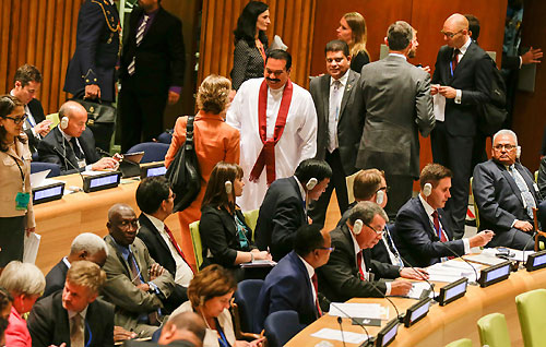 President Mahinda Rajapaksa arrived at the UN Headquarters in New York this morning to participate the United Nations Climate Summit 2014 . UN Secretary-General Ban Ki-moon is hosting this Climate Summit from September 23, 2014, to engage world leaders from government, finance, business and civil society to catalyse climate action.