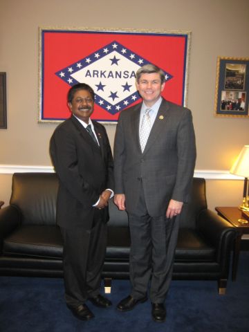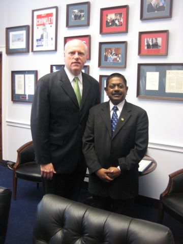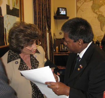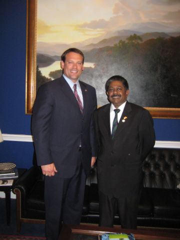 Turn from Conflict Concerns to the Humanitarian Relief Mission Sri Lanka’s ambassador to the United States continued meetings with members of Congress in April, offering briefings on the coming conclusion of the government’s conflict with the Liberation Tigers of Tamil Eelam, as well as prospects for civilian resettlement and redevelopment. Ambassador Jaliya Wickramasuriya stressed the government’s intent to resettle displaced persons as soon as possible. He explained to those he met with in Congress the success the government has realized in resettling and rebuilding the Eastern Province. Ambassador Wickramasuriya met six members of the House of Representatives during the third week of April. He will continue meetings on Capitol Hill this week and next. All six members of the House expressed their support for the Sri Lankan government’s efforts to conclude its conflict with the Liberation Tigers of Tamil Eelam, or LTTE. Several representatives, such as South Carolina Republican Rep. Joe Wilson, compared the struggle in Sri Lanka to efforts by the U.S. to rid Afghanistan and Pakistan of the Taliban and Al Qaeda extremists. Wilson, a leader in the India caucus in the House, said a swift end to the fighting in Sri Lanka would, “be good for the whole region, for all of South Asia.” Ambassador Wickramasuriya used maps and diagrams to show each member of Congress just how much ground Sri Lankan forces had wrested from the LTTE in recent months. He explained the need for aid for extensive de-mining operations, as well the disciplined approach that Sri Lankan forces had taken to safeguard civilians in an increasingly complex battle zone. Ambassador also showed members of Congress where the government had established welfare centers for the 180,000 people who have left LTTE areas until the fighting ends. Included among them are the 111,000 people who escaped from the LTTE within the last week alone. “Our main purpose is getting the civilians out of danger,” Ambassador Wickramasuriya told those in Congress. “The Tigers were firing at the civilians who were fleeing.” Apart from Rep. Wilson, Ambassador Wickramasuriya met with Rep. Heath Shuler, a North Carolina democrat, Rep. Mike Ross, a democrat from Arkansas, Rep. Joseph Crowley, a New York democrat, Rep. Shelley Berkley, a democrat from Nevada and Rep. Chris Van Hollen, a Maryland democrat. Rep. Van Hollen’s father served as the U.S. ambassador to Sri Lanka from 1972 to 1976, and Rep. Van Hollen spent those years as a boy living in Sri Lanka. While about 30 members of Congress recently wrote a letter calling for a ceasefire in the conflict, many others are expressing support for Sri Lanka’s effort to end the fighting once and for all. Indeed, in meetings with Ambassador Wickramasuriya, members of Congress have called the ceasefire letter mistake. A ceasefire, Ambassador Wickaramsuriya noted in the meetings, would allow the LTTE to rearm and regroup. The recent two-day unilateral pause in the conflict, he noted, allowed the LTTE to fortify defenses to keep the civilians form escaping. Several of the House members have already visited Sri Lanka, and Ambassador Wickramasuirya is helping some members of Congress organize Congressional fact-finding visits in near future.