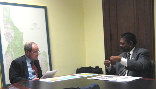 Jaliya Wickramasuriya, Sri Lanka’s Ambassador to the United States, continued a series of meetings with members of Congress last week to update them on the facts of the conflict against the LTTE and most importantly to discuss U.S. support for post-conflict development. Ambassador Wickramasuriya had discussions with more than 20 members from the House of Representatives and from the U.S. Senate, some of whom had been previously critical of the conflict. The discussions focused on the plight of the innocent civilians trapped by the Liberation Tigers of Tamil Eelam, the government’s efforts to conduct hostage rescue missions and the calls from some Western governments for a ceasefire. Ambassador Wickramasuriya related the stories of those civilians who have escaped the LTTE, noting how they were shot at as they fled and the difficult conditions they had lived under when held by the LTTE. Ambassador also compared LTTE tactics to those of Al Qaeda and other terrorist groups that are well known in the U.S. The members of Congress pledged their support for the fight against terrorism, while several noted their concern for the trapped civilians. Ambassador Wickramasuriya explained in detail the actions taken by the government to protect the trapped civilians, and noted that the LTTE was wrongly blaming the government for the civilians’ plight. Several members offered their support of the Sri Lankan government. Some of those who met with Ambassador Wickramasuriya have recently been to Sri Lanka. They praised the country and stressed the need to end terrorism in Sri Lanka. One member even said an LTTE suicide bombing occurred during his visit. Ambassador Wickramasuriya used maps, photographs, and aerial pictures of civilians fleeing the conflict zone to demonstrate what the civilians had experienced. One member of Congress, Rep. Mike McMahon, asked why a ceasefire would not help the civilians? Ambassador Wickramasuriya answered that previous ceasefires with the LTTE have failed. Ambassador noted in the meetings, a ceasefire would allow the LTTE to rearm and regroup. The recent two-day unilateral pause in the conflict, he noted, allowed the LTTE to fortify defenses to keep the civilians form escaping. He showed Congressman McMahon pictures of LTTE militants aiming guns at groups of civilians, as well as the earth bunds that kept civilians under LTTE control. During the meeting with Sen. James Risch, a Republican from Idaho, Ambassador noted that the Sri Lankan government’s view is not always represented during Senate hearings on the conflict. “It’s nice to hear the other side,” Sen. Risch said, noting that he now understands the situation in the conflict zone. Support in Congress is important for the Sri Lankan government, which has asked for aid from the U.S. and West for post-conflict activities. The pro-LTTE lobby in Washington has become more active as the LTTE’s prospects in the conflict have diminished.