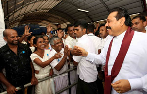 People of the Sabaragamuwa province felicitated President Mahinda Rajapaksa and the war heroes at the Sumana Saman Devalaya in Ratnapura today afternoon on 18th August.
