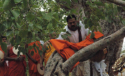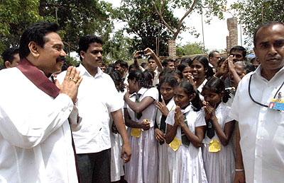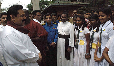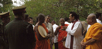President spoke with the devotees who had visited to pay homage to the Atamasthana in Anuradhapura. He also spoke with school children of Silawathura Maha Vidyalaya, Mannar who had visited Sri Maha Bodhi. Atamasthanadhipathi Ven Pallegama Sirinivasa Thero, Maha Sanga, Governor of North Central Province Mr. Karunarathne Diwulgane, Chief Minister Berty Premalal Disanayaka, Chief Of Defence Staff Gen. Sarath Fonseka, Army Commander Jagath Jayasooriya, Director of Archeologist Post Graduate Institute Dr. Nimal Silva, Archeologist Provincial Director Mr. Mahinda Weerakkody also participated on the occasion. Pix: Sudath Silva