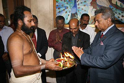 The event was commenced with Hindu religious observances by His Holiness Kurukkal Shree who blessed Sri Lanka and the gathering. High Commissioner Justice Nihal Jayasinghe addressing the gathering said, “I believe that there is another meaning in celebrating Deepawali for Sri Lankans today. As Sri Lankans living in the UK – as British Sri Lankans – it is a way of joining your family members, relatives and friends in Sri Lanka through the umbilical cord of our culture. It is a way of remembering and revisiting our culture. It is an expression of unity in diversity as Sri Lankans – wherever you live. Moreover, I believe, it is a lighting of an array of hope for a peaceful and prosperous Sri Lanka.” Quoting from the Deepawali message of H.E. the President the High Commissioner stated that “As the Hindus of Sri Lanka, join their fellow believers the world over in the joyous spirit of Deepavali, we are now at the threshold of a new era, where the suffering faced by the Hindu community will be a thing of the past; and they could all look forward to living in peace and harmony in the comfort and tranquillity of their own homes”. The High Commissioner further stated that “I believe as the President says in his message, we will be seeing rapid strides in Sri Lanka, to alleviate all the suffering of our brothers and sisters there. There will be a new era of peace and prosperity. Today, I believe, we all should light that hope in our hearts – not only as Hindus who are celebrating Deepawali, but also as Sri Lankans”. Mr. P. M. Amza, Deputy High Commissioner delivering the vote of thanks stated that this is an event to get together as Sri Lankans but not as different communities. He thanked all the participants too. The gathering enjoyed a splendid cultural performance by Sanskruthi Dance Troupe and a sumptuous reception of traditional Hindu cuisine. The event was also graced by Dr. Palitha Kohona, Permanent Representative of Sri Lanka to the United Nations in New York. Pix: Nimal Navaratna