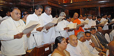 The newly elected members of the Southern Provincial Council took their oaths before President Mahinda Rajapaksa in a ceremony held at the Presidential Secretariat this morning on 29th October.