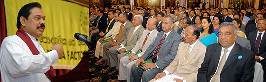 He attended the AGM as the Chief Guest and said that his government received the blessings of the patriotic people of the entire country and pledged to build a peaceful country eliminating terrorism. After defeating terrorism successfully, problems prevailing today cannot be passed on to the future generations. Therefore the resources and strength utilized in the past to defeat terrorism has been converted to develop the country now. Speaking further, the President said that there is a need for modernization in the local plantation sector to face the current food crisis and also global market challengers in the future. So the Government granted the fertilizer subsidy and facilities to obtain bank loans at a time when the entire world was embroiled in an economic crisis. At the AGM the Private Tea Factory Owners’ Association handed over 19 million rupees for the "Api Wenuven Api" Ranaviru Fund. Ministers D.M. Jayaratne and Lakshman Yapa Abeywardena, Secretary of the Plantation Mrs Indrani Sugathadasa and executive members of the association were among those present Pix by: Chandana Perera