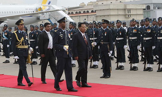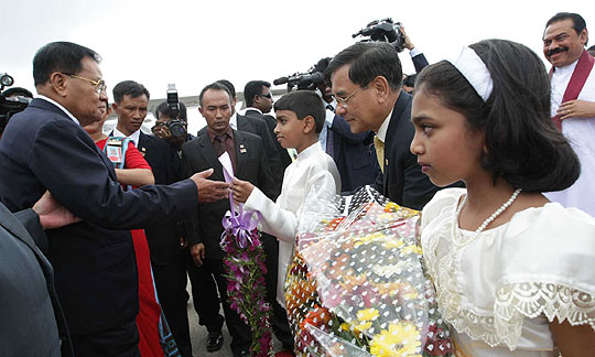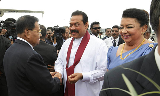President Than Shwe and his delegation was warmly welcomed by the Sri Lankan President Mahinda Rajapaksa and First Lady Shiranthi Rajapaksa at Katunayake International Air Port. Myanmar’s President General Than Shwe arrived at the invitation of his Sri Lankan counterpart Mahinda Rajapaksa to further strengthen bilateral ties. During the Myanmar President's stay in Sri Lanka several MOUs would be signed between the two countries. Pix By: Sudath Silva