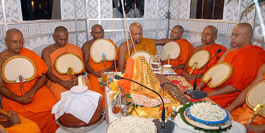 Various religious programmes are being organised countywide to invoke blessings on President Mahinda Rajapaksa on his 64th birthday and overnight Pirith Chanting was conducted at the Presidential Secretariat yesterday (18th November) to celebrate the birthday and the fourth anniversary in assumption of duties as Executive President.