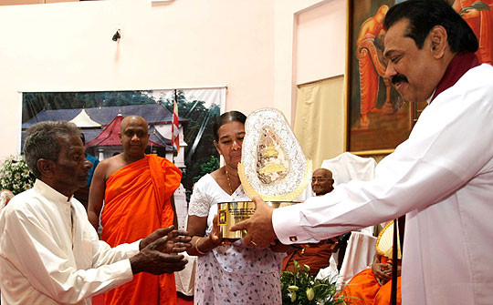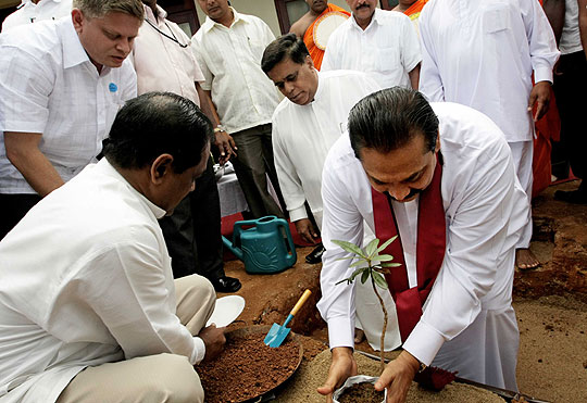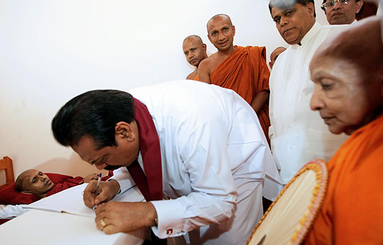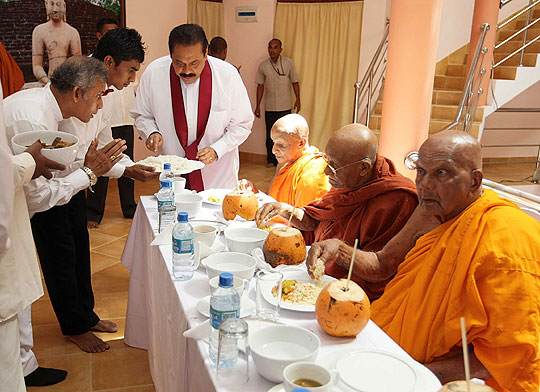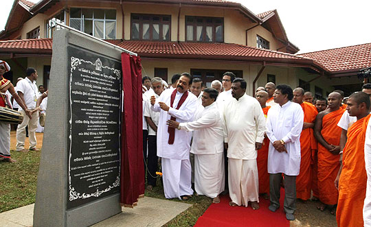 A well equipped new bhikku hospital for Maha Sanga was ceremoniously opened by President Mahinda Rajapaksa at Galaha, close proximity of Kandy city on 6th November. The new hospital which was built in a land donated by the parents of Ven Delthota Dhammajiththi thero at the cost of 50 million rupees. President also planted a tree in the hospital land to mark the occasion, declared open the electricity supply of the hospital and admitted the first patient monk to the hospital by himself. Later Dhana was offered to Maha Sanga inside the hospital premises. Later President Rajapaksa addressed the gathering and expressed his sincere appreciation to Maha Sanga for the blessings, advice, guidance and courage he received from them during the humanitarian mission carried out to liberate the country from terrorism. Chief Incumbent of the Asgiriya Chapter Ven Udugama Sri Buddharakkitha Maha Nayaka Thero, Ven Dauldena Gnanissara Anu Nayaka Thero, Ven Pilapitiye Gnanawasa anu Nayaka Thero, Ven Delthota Dhammajiththi Thero, many politicians, well wishers and a large number of local crowds participated in the occasion. (Pix By: Sudath Silva)