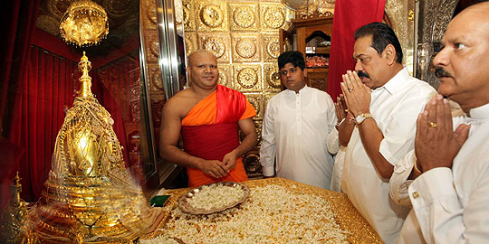 President Mahinda Rajapaksa was in Kandy this morning on 6th November and paid homage to the most sacred Temple of Tooth Relic in Kandy during his visit to hill country.