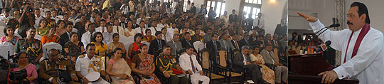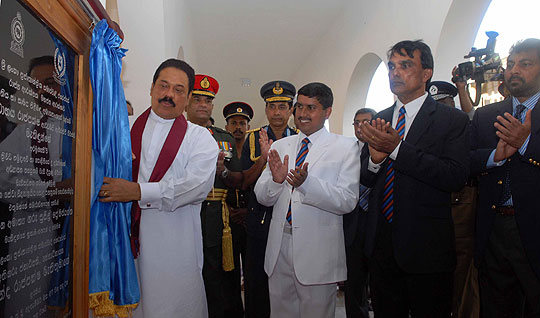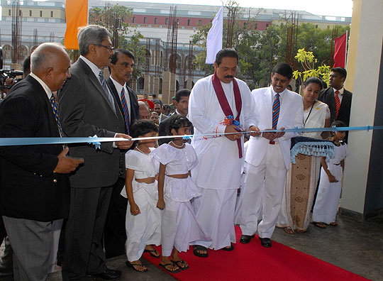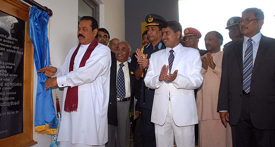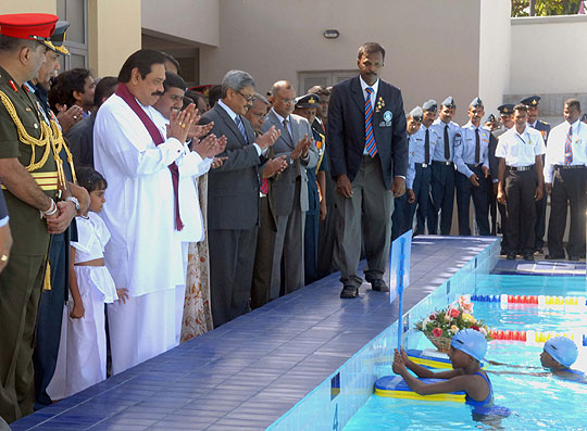 President Mahinda Rajapaksa declared open the common facilities building and a new swimming pool for the Defence Services College on 7th December 2007. He promised to provide more facilities to bring up the standards of the Armed Forces in the future and appreciated the valiant service they did for the benefit of the nation by defeating brutal terrorism. Minister Dinesh Gunawardena, Defence Secretary Mr Gotabaya Rajapaksa and principle of the college Mr Pramuditha Wickramasinghe were present. Army Commander Major General Jagath Jayasuriya, Navy Commander Vice Admiral Thisara Samarasinghe and Air Force commander Air Marshal Roshan Goonathilaka also participated the occasion. Pix By: Chandana Perera