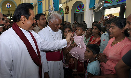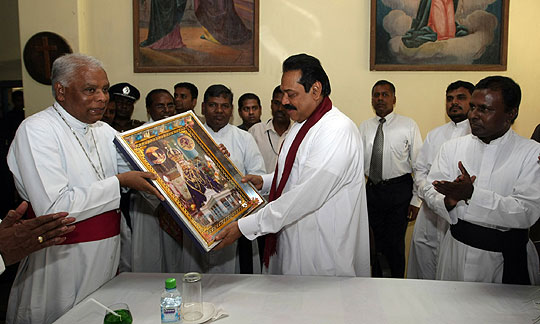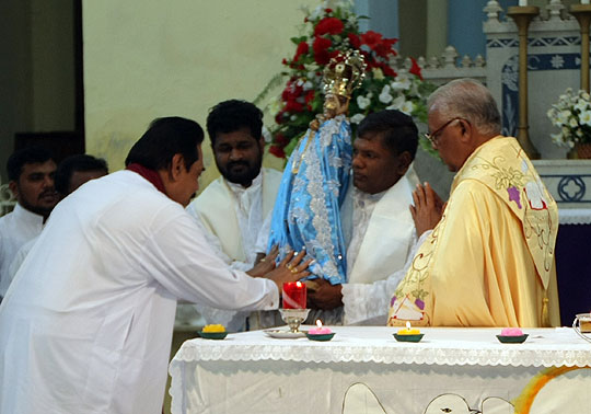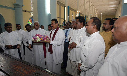 President Mahinda Rajapaksa visited the Madhu Church in Mannar and breaks the three decades absence of the Head of Sri Lankan State to the Catholic Holy Shrine on 9th December 2009. He paid homage to the Madhu Matha on his way back to Colombo after unveiling the victory monument for the valiant war heroes in Nandikadal lagoon at Pudumathalan.