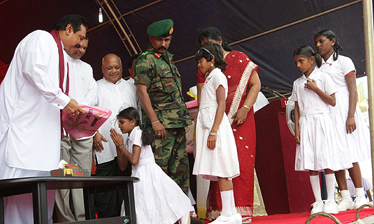 President met internally displaced people those who were temporally accommodated in Chettikulam and inspected the welfare of the inmates. He also instructed the officials to provide all facilities they needed without fail. People thanked the President for visiting them and all the facilities were provided for until they are resettled in their villagers. The President’s personal visit to the camp brought a smile to the faces of the people and said that they expect to go back to their homes as soon as possible. Officials also promised to resettle them by end of January 2010, as government expects to complete the resettlement programme. Pix By: Sudath Silva