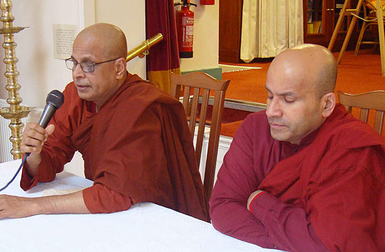 Bhikkuni Sanghamitta, who established the Bhikkuni Order in Sri Lanka has a very special recognition in Sri Lankan history and she has been highly respected for more than 2300 years in the island. Therefore, this festival is very unique to Sri Lanka as it commemorates the arrival of Bhikkuni Sanghamitta, daughter of one of the greatest sons of India, Emperor Asoka. Her arrival is also of significance to Buddhists all over the world as Bhikkuni Sanghamitta brought a sapling of the Bodhi Tree from Buddha Gaya, where Lord Buddha attained enlightenment after meditating for forty days under this holy Bodhi tree. When Arahat Sanghamitta Therani arrived from Dambakola Patuna, North port of Jaffna peninsula in Sri Lanka, King Devanam Piyatissa (250 - 210 B.C) honored their arrival by wading into the water up to his neck in greeting. The holy tree cutting that she brought, a living link to the enlightenment of the Lord Buddha, was taken with great pomp to the heart of the capital city of Anuradhapura and ceremonially planted in Mahamewuna Uyana. There, the blessed tree, continuously worshiped as "Jaya Sri Maha Bodhiya", lives on even now, 2300 years later. This Bodhi Tree is the oldest living tree with a known planting date and regarded as the oldest historically authenticated tree in the world. Religious observations took place for the annual Sanghamitta Day celebrations at London Buddhist Vihara and started with administering the Eight Precepts and Admonition (Anusasana) by Venerable Bogoda Seelawimala Nayaka Thero, Chief Sangha Nayaka of Great Britain and Head of the Vihara. The meditation programme was conducted by Sister Ajahn Sundara representing Amarawathi Buddhist Monastery, Hamel Hampstead, Hertfordshire. Sinhala Dhamma sermon was delivered by Ven Thawalama Bandula Thero. Sinhala and English Dhamma talks, Sutta readings, Pirith Chanting, Buddha puja and many more events were included to the busy schedule of the day. Large numbers of upasakasa and upasikas observed Eight Precepts (Ata Sil) and venerable monks and devotees of the temple participated the religious event. Pix by: Tissa Madawela