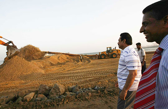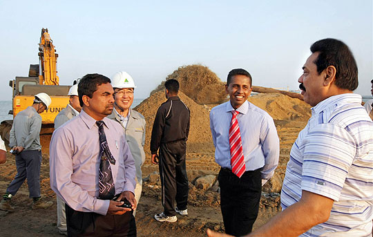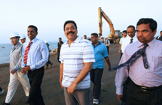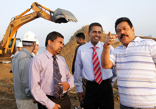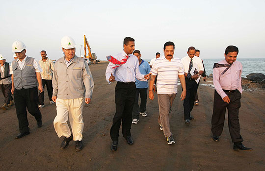 President Mahinda Rajapaksa inspected the construction site of the Colombo South Port (2nd Port) of the Colombo Harbour new development project in the early hours of 06thJanuary. The project has undertaken by Hyundai Engineering & Construction Co of South Korea. The new expansion includes 4 terminals, channels and breakwaters.