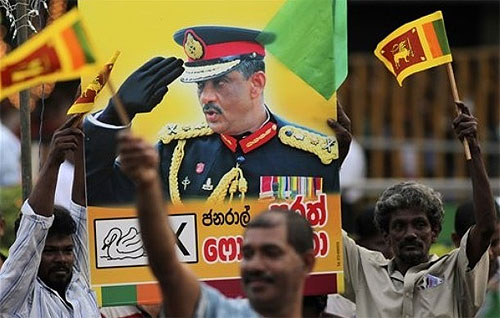 "We have now 14 constituent parties with us and it only took just two hours for us to select a suitable presidential candidate free from party bonds. Sarath Fonseka is our candidate. We told him about the need to abolish the executive presidency for which he readily agreed. But he said he cannot be a mere vase of flowers and that he wanted to manage affairs relating to education and health of the people as the executive president for the time being," said JVP leader Somawansa Amarasinghe. He was addressing a presidential election propaganda rally held at Polhena in Matara. Amarasinghe said: "The JVP is today following a new system and ready to listen to any political party and discuss their plans too regarding crucial problems affecting the country. "The main problem of the hour is the baneful executive presidency. We should all work hard to abolish it by electing our common candidate, General Sarath Fonseka as president on Tuesday to eradicate corruption, nepotism and favouritism". "The war hero who defeated terrorism would also be able to tackle the other problems of the country in the same manner. We would categorically state that there is no need to go for elections and voting if military governments are to be formed by us," he added. Matara District MP Jinadasa Kitulegoda, SPC member, Gayan Sanjeeva also spoke. Courtesy: Island