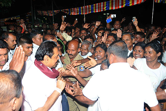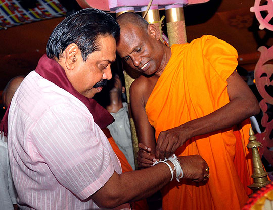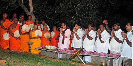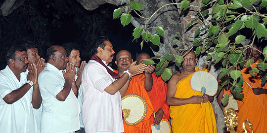 President was blessed at the Maha Maluwa at Sri Maha Bodhiya by venerable Maha Sangha headed by Atamastanadipathi Venerable Pallegama Sirinivasa Nayaka Thero and Mahanayake of the Ruwanweliseya, Venerable Pallegama Hemarathana Nayaka Thero. Later President Rajapaksa visited Ruwanweliseya, Abhayagiriya, Thuparamaya, Isurumuniya and other historical religious sites in Anuradhapura. During the President’s first visit to the historical Buddhist City after winning the election, he inspected most of the development projects under taken at the Mahamewna Uyana in Anuradhapura. Governor of the North Central Province Mr.Karunarathna Divulgane, Chief Minister Mr.Berty Premalal Dissanayake, Minister S.M Chandrasena and the Additional Secretary to the President Mr.Gamini Senarath were present at all the religious observances. Pix by: Nalin Hewapathirana