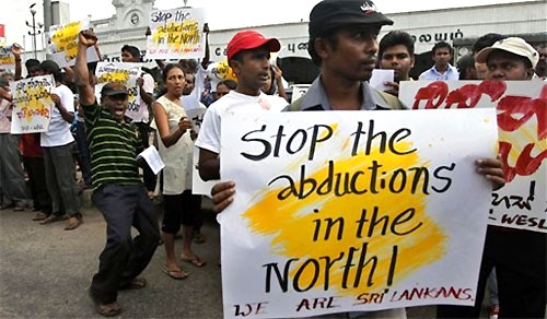 After two and a half years of the end of the war many Sri Lankans were hopeful that democracy would be upheld in the North and East after the dispelling of terrorism in those parts. No one anticipated that this would happened in a day, a week or a month, however people hoped that democracy would be established in the North and East systematically and the groundwork would be established for a free and fair society. It was also anticipated that a fair course of action would be taken with regard to those that were displaced due to the war and those that were taken into custody during the war. The public also anticipated that a political solution would be discussed to ensure a lasting and sustainable peace. However after May 2009, the democratic situation in the country has gotten worse than what it was during the time of the war and the current situation is distorted and frightening. There have been a number of violations of the law since this time, and the government has been directly or indirectly involved in this process. The unlawful and undemocratic acts carried out by ministers down to political pawns have resulted in the deteriorating democratic situation in the country. The suppressive arm of the government is now coming down on society and the underworld. The white van culture which pervaded society during the time of the war has now pervaded the underworld as well, this is best demonstrated by the number of underworld individuals that have been abducted or gone missing. The thugs that were with Duminda Silva, who was allegedly involved in the death of Baharatha Laxman, have gone missing or been abducted. After the arrest of Dematagoda Chaminda, those that have gone missing are Dematagoda Aja, Lunu Chaminda, Dematagoda Nimal, Pita-kotte Kapila Banda, Loku Seeya, Dematagoda Lasantha, Navy Ruwan, Galaboda Chamil Dhammika and Kotahena Christopher Leonard Fernando. Information is available only about three of these ten individuals; Pita-kotte Kapila Banda, Loku Seeya and Dematagoda Lasantha. Loku Seeya’s body was identified in Akkaraipattu by one of his relatives, Pitakotte Kapila Banda was a businessman and therefore released due to an uproar by the public in the area. Dematagoda Lasantha was also released. Meanwhile seven other individuals remain missing. Under no law of this country can it be condoned that underworld leaders or regular members of the public are punished outside the system of law and order in this country. It is a known fact that the government provided the framework for those in the underworld to operate freely. In addition to the police officerbody guards present at the scene of the killing of Bharatha Laxman Premachandra , members of the underworld were also present with Duminda Silva at the time. On a surface analysis of this situation, it might dawn on us that the reason for the assassination of these underworld individuals is an attempt to cover up a scandal of some nature. Today there are over 250,000 members in the armed forces and police which is proportionally, one officer per 82 people in this country. However no investigation is taking place into these abductions and no one has been taken into custody in connection with them. The white van culture in this country was discussed by the Lessons Learnt and Reconciliation Commission. When human and fundamental rights are being violated in this country it is no surprise that the international community will pay attention to what is happening here. Due to the human rights record of the government we lost out on the GSP+ concession from the European Union, thereby 200 factories opened in 1993 for the garment industry lost competitiveness. This loss of international competitiveness led to a drop in our exports. The government is attempting to showcase the facts that Sri Lanka has the American GSP, as a consolation prize for the GSP+, however the truth is that 129 countries receive the American GSP and therefore it does not increase our competitiveness to such an extent. Abductions are not only taking place in the south but also in the north. During a demonstration on the 9th of December Kugan Muruganandan and Lalith Kumara were abducted. They had previously been warned by military officials not to participate in any political activities. They were members of the JVP, but after the dissention in the JVP, they joined the dissident group. We have to question as to what kind of democracy has been bestowed on the people of the north, after the defeat of terrorism, if they cannot take part in political activities freely. The government is trying to hoodwink the people by saying that there are intergovernmental conspiracies to defame the government, instead of facing these allegations of human rights head-on. Source: Daily Mirror - Sri Lanka