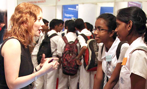 Higher Education Minister S. B. Dissanayake yesterday encouraged UK higher education institutions to set-up campuses in Sri Lanka to meet the growing demand for UK qualifications. Addressing representatives of UK higher education institutions at the 19th annual Education UK Exhibition which was opened yesterday, Minister Dissanayake said, “In line with our vision of becoming a regional education hub, we hope that you will consider setThe Education UK Exhibition organised by the British Council, is the largest British Education exhibition of its kind in Sri Lanka. It offers students and parents an opportunity to consider the wide range of study options in the UK and in Sri Lanka, and gives students a chance to meet representatives of UK institutions face-to-face to discuss their study options. “Education ties between the UK and Sri Lanka have always been strong. The presence of 56 UK Universities in Sri Lanka reaffirms the importance and value both countries attach to education. Last year we had around 3,000-4,000 visitors and this year too we expect to attract an equally large crowd,” said Tony Reilly, British Council Country Director. Students can also attend the variety of subject seminars at the exhibition to obtain details about the areas they are interested in. Seminars conducted this year will cover general topics such as student visa, scholarships in the UK, living in the UK, and will also cover subject areas such as Law, Medicine, IT and Computing, Business Studies and Engineering. In addition to the UK exhibitors, students will be able to meet representatives from the UK Border Agency (UKBA), IELTS and obtain details of UK University courses delivered in Sri Lanka through Sri Lankan educational partner institutions. Meanwhile, Higher Education Minister S. B. Dissanayake and a high-level delegation from Sri Lanka including three Vice-chancellors will leave for London on Sunday to participate at the sixth consecutive British Council organised ‘Going Global’ Conference. Minister Dissanayake will present the government’s vision to establish Sri Lanka as a regional educational hub with delegates from over 50 countries. He is expected to invite UK Universities to consider setting up more collaborative partnerships and overseas campuses in Sri Lanka. The Minister is also due to hold bilateral talks in London with UK Minister for Higher Education, David Willets MP. Source: Daily Mirror - Sri Lanka