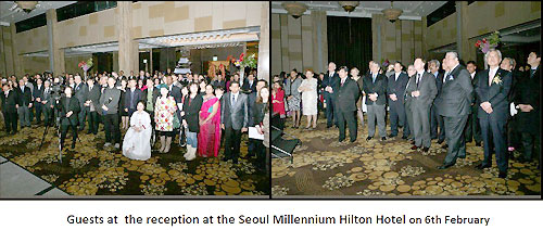 Two experienced Sri Lankan chefs from the Colombo Hilton Hotel, whose visit was arranged by the Embassy, prepared Sri Lanka food for the Food Festival. The food festival will continue until February 28that the “Orangerie” restaurant in the Millennium Seoul Hilton Hotel. This will provide an opportunity for Korean food lovers to taste sumptuous and authentic Sri Lankan food such as hoppers, kotturoti, some special curries, coconut sambol, and watalappan. 3) On the evening of February 6th, Ambassador Wijeratne hosted a reception at the Millennium Hilton Hotel to mark Sri Lanka’s Independence Day and the 35th Anniversary of the establishment of diplomatic relations between Sri Lanka and South Korea. Hon. Kim Kum-Lae, Korean Minister of Gender Equality and Family, was the Chief Guest at the event. Speaking on the occasion, Minister Kim stated that Sri Lanka and South Korea are bolstering co-operation in various venues in order to expand bilateral relations between the two countries. Ambassador Wijeratne addressing the 300 guests’ including Korean officials, diplomats, the business community, travel, trade, cultural and academic organizations and the media, indicated that Sri Lanka is steadily moving towards economic development with remarkable progress and the promise of growth. These strong economic fundamentals have made it a preferred destination for foreign investors. The Ambassador further noted that Korean Air direct flights from Seoul to Colombo will launch on 9th March 2013 and will drastically increase the number of Korean tourists to Sri Lanka in the coming years. The Ambassador elaborated that establishing these direct air links will open a new chapter in the bilateral-commercial relationship between Sri Lanka & Korea as well as boost trade ties between the two countries. Ambassador Wijeratne also expressed his hope for the Government of Sri Lankan to closely work with President-elect Madame Park Geun–hye and the new Administration and to continue to strengthen Sri Lanka’s longstanding bilateral relations with the Republic of Korea. As the Independence Day celebrations continued the Sri Lankan Dance troupe, Channa-Upuli, lit up and attracted a large audience with their elegant and stylistic dances. Guests also enjoyed screenings of documentaries, which provided some insight into the island nation of Sri Lanka. The guests further had the opportunity to taste authentic Sri Lankan food including traditional Sri Lankan rice and curry prepared by the two Sri Lanka chefs from the Colombo Hilton Hotel.
