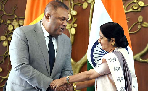 External Affairs Minister Sushma Swaraj conveyed India's views to her new Sri Lankan counterpart Mangala Samaraweera, who arrived here overnight on his first foreign trip after Sirisena came to power Jan 9. In three hours of extensive discussions, Sushma Swaraj and Samaraweera covered all issues including enhancing bilateral cooperation and political reconciliation efforts in Sri Lanka. Also discussed were Indian development partnership projects in Sri Lanka and issues related to the alleged trespassing of Indian fishermen into Sri Lankan waters. An external affairs ministry statement said the two ministers "had extremely cordial, positive and substantive discussion", covering the entire expanse of the "close and friendly (bilateral) relations". Samaraweera indicated that his choice of New Delhi as his first destination "reflects the priority the new Sri Lankan government gives to relations between our two countries". India and Sri Lanka agreed to re-engage on the issue of repatriation of Tamil refugees currently in India. A meeting of officials on this is to be held later this month. The Sri Lankan minister indicated that efforts were underway to release Indian fishermen's boats seized by authorities in Colombo. An early meeting of the fishermen's associations of the two countries has been proposed to discuss issues confronting the two communities. Both India and Sri Lanka feel that a longer term solution needs to be worked out taking into consideration all aspects of the matter, the Indian statement said. The ministers agreed that the matter needed to be dealt with in a humane way as it impacted the livelihood of thousands in both countries. Colombo has accused fishermen mainly from Tamil Nadu of fishing in Sri Lankan waters, affecting the earnings of its own fishermen. The bitter row has often led to clashes in the sea and even deaths. Samaraweera briefed Sushma Swaraj on the constitutional reform efforts initiative by the new government in Colombo which has ousted the regime of Mahinda Rajapaksa. Sushma Swaraj said India was keen to work "closely and extensively" with the new Sri Lankan government. The India-Sri Lanka Joint Commission, which last met in January 2012 in New Delhi, will meet soon. Sushma Swaraj has also agreed to visit Colombo. The visiting minister will call on Prime Minister Narendra Modi and hold discussions with National Security Advisor Ajit Doval Monday. The two ministers agreed to pave the way for Sirisena's visit to India at an early date. An Indian spokesperson said: "The talks have been marked by warmth, mutual respect and understanding, and the substantive outcomes demonstrate the desire of India and Sri Lanka to boost our bilateral ties." India has repeatedly called for a political solution to issues dealing with the Tamil minority in the island nation. The government change in Colombo is widely expected to improve relations between India and Sri Lanka that had become strained over the latter's increasing military ties with China.