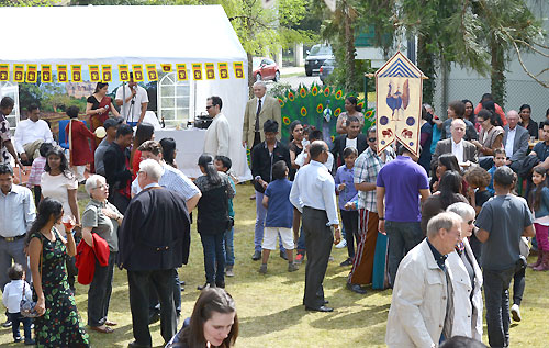 The theme this year was; "Peace and Reconciliation". Ambassador Amunugama inaugurated the event by hoisting the National flag followed by the singing of the National anthem by all present. Representatives of six Sri Lankan associations based in Berlin joined the Ambassador in Lighting the traditional oil lamp. Then the traditional boiling of milk in a new clay pot on a wood fire (Kiri Ithiraveema) was done at an auspicious time. Religious observances were conducted by the Buddhist and Hindu clergy and blessings were invoked on the people gathered. Welcoming the visitors, in his opening speech Ambassador Karunatilaka Amunugama highlighted the cultural and social significance of the Sinhala &Tamil New Year and the importance of continuing this cross cultural event for unity among communities. “This celebration clearly demonstrates the deep-rooted common bond and cultural heritage between Singhalese and Tamils in Sri Lanka. Let us all continue to uphold and cherish that common bond and heritage among us and wish that all our people in Sri Lanka will live in peace and harmony as one family, the Sri Lankan family,” he said. The Embassy had also organized games which are particylar to the New Year season in Sri Lanka which included, drawing the eye of the elephant, while blind folded, sack race, fancy dress parade, passing water balloons, walking with a lime on a spoon, passing eggs, needle & thread game, musical cap passing, hitting a hanging pot while blind folded (kanamuttiya gaseema), Collecting Toffees,Tug of war (kamba edema), finding the ”Hidden Guest" and many more. Around 300 visitors, among them more than 40 children enjoyed a full day of New Year celebrations. All who attended the event were treated to a traditional New Year breakfast consisting of milk rice (Kiribath) and traditional New Year Sweets Meats like Munkewum, Kokis, Welithalapa, Wibara etc., as well as pure Ceylon tea. A delicious traditional Sri Lankan lunch buffet was also laid out to all the visitors. Traditional Sri Lankan Music unique to the season was played throughout the event. The day ended with a prize giving ceremony, awarding three prizes for each game. In his thanking remarks, Ambassador Karunatilake Amunugama appreciated the support given by the six associations in Berlin, the Eksath Sri Lanka Kavaya, Sri Lanka Association Berlin e.V., Berlin Lions Cricket Team, DesPa e.V., Sinhala Cultural Association e.V. and Lanka Help e.V. Deutschland and the Sri Lankans living in Berlin. He pointed out the importance of teaching Sri Lankan cultural and traditional practices to the younger generations growing up in foreign countries, . The event concluded after singing the National Anthem. The first effort of holding a New Year celebration by the Sri Lankan Embassy goes back to 2010, by the then deputy Ambassador Maj. Gen. Jagath Dias. This first endeavour was a unique event, as the war veteran sacrificed his entire monthly salary in order to make the event a success that year. This followed a very successful New Year Celebration in 2011. Since then Berliners had to wait for three years as there was no New Year Celebration organised by the Embassy during Ambassador Kongahage's tenure. However, Ambassador Amunugama has correctly and appropriately identified the importance of cooperating and getting the support of the Berlin based Sri Lankans, in promoting Sri Lanka in Germany. |