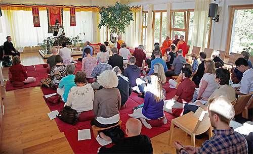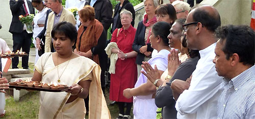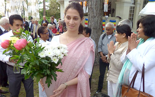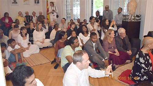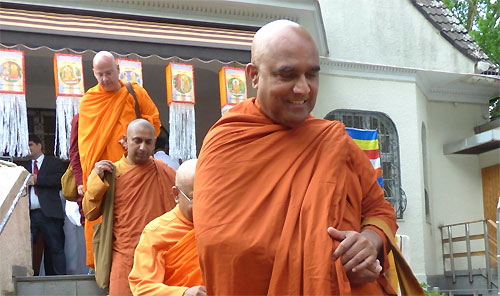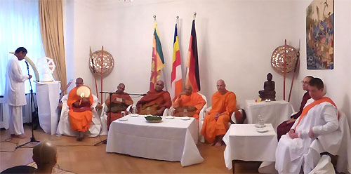 Buddhism is growing in Germany and as a result the number of Buddhist places of worship, meditation centres and religious centres where people meet are on the rapid increase. There are around 700 Buddhist institutions representing all traditions of Buddhism in Germany, these figures could be higher as some groups shun publicity. In the capital city, Berlin, there are around 30 – 40 Buddhist temples and over 50 German Buddhist organisations and a large Asian Buddhist community compromising of Sri Lankans, Thai Nationals, Tibetans and Vietnamese. As for all Buddhists around the world for the Buddhists living in Berlin, the month of May is a busy month because of Vesak celebrations and it’s relevance to the Buddhist world. Since last year, Ambassador Karunatilake has added a novel event to the event calendar of the Sri Lanka embassy by holding a lecture on Buddhism in the month of May to coincide with Vesak celebrations in Berlin. The main intention of the Ambassador is to reach out to the German Buddhists in Berlin. He and his staff organized a ‘Vesak day’ programme on Friday 27th May 2016 at the Embassy premises, giving emphasis to the teachings of Lord Buddha. In order to provide an ambiance of Vesak to all present, the Embassy premises was decorated with Buddhist flags, clay lamps and colourful Vesak lanterns. The programme began with a ‘Gilanpasa Buddha Pooja’ followed by chanting of Seth Pirith by Ven. Dr. Wijayarajapura Seelawansa Thero, Ven. Rambukwelle Devananda Thero, Ven. Kongaspitiye Santharakkhitha Thero, Ven. Kurunegoda Dhammaloka Thero, Ven. Santuttho Thero of Germany,Ven. Bhikkuni Sangamittha of Netherlands and Ven. Bhikkuni Anagarika Kusaladhamma to invoke blessings upon the participants and all the Sri Lankans for a peaceful and a happy life. The sermon, “The silence in thunder - how to find peace and happiness in a chaotic world” was delivered by Ven. Dr. Wijayarajapura Seelawansa Thero, in German language and the participants were encouraged to reflect more deeply on the Buddhist way of life. Ambassador, Karunatilaka Amunugama in his short introductory speech emphasized the importance of Vesak and recalled the joint efforts of the international Buddhist community, led by Sri Lanka to spread the teachings of Buddha which conveys a timeless message for every individual to live happily and peacefully. Ambassador also mentioned the service rendered by German Buddhist monks and scholars to enrich and spread the teachings of Lord Buddha. At the end of the programme the participants were invited to enjoy a Sri Lankan vegetarian meal prepared by the Embassy staff. Berlin’s oldest Buddhist temple “das Buddhistische Haus” in Frohnau celebrated Vesak on the 22nd May with the Sri Lankan community and Germans. Around 200 Buddhists participated in religious activities on that day. Ven. Kongaspitiye Santharakkhitha Thero conducted the religious ceremonies at the Frohnau Temple. Thai and the Vietnamese commemorated Veask at their own temples. The majority of participants were mainly from their communities which makes around 8000 Buddhist followers in Berlin from Thailand and Vietnam. The consortium of 50 German Buddhist organisations from Berlin and Brandenburg called BUBB celebrate Vesak on the 8th of may at Lotus Vihara with a full day programme starting off at 10 in the morning with offerings, lectures, workshops and ending the day with variety programme in the evening.