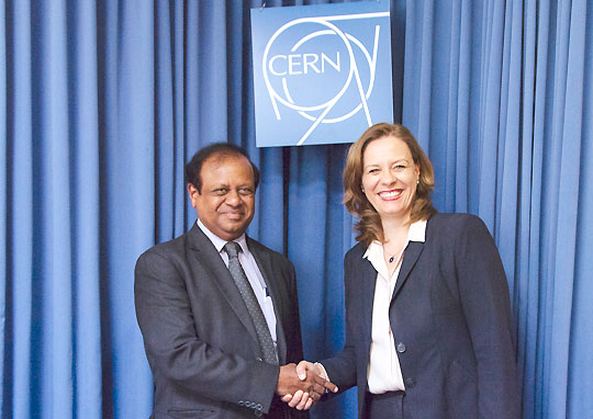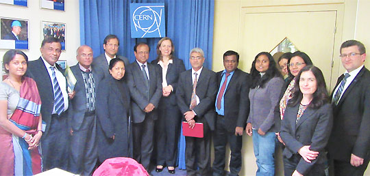 Minister of Science, Technology and Research, Susil Premajaytha has announced that a Steering Committee will be established in Sri Lanka to develop physics education at the high school and university levels and to strengthen cooperation with the European Organization for Nuclear Research (CERN). The Committee would comprise of a core group drawn from universities and relevant agencies, such as the Ministry of Science, Technology and Research, COSTI, NSF, etc. The Minister made this observation when he addressed an event on Wednesday 3 May 2017 in Geneva, to mark the visit to CERN by the first scientific delegation from Sri Lanka comprising 5 Sri Lankan physicists representing universities of Sri Lanka from 3-5 May 2017. Sri Lankan Permanent Representative to the UN in Geneva and Consul General to Switzerland Ravinatha Aryasinha and officials of the Mission who initiated the process were associated in the event. Minister Premajaytha noted that as a follow up to the visit, a Road-Map will be evolved to enhance scientific collaboration in High Energy Physics between the scientific community of Sri Lanka and CERN. This will include enabling Sri Lankan scientists to join the Compact Muon Solenoid (CMS) Experiment and other processes at CERN and thereby to be exposed to cutting edge technology and research in high energy physics. A delegation from CERN will also visit Sri Lanka later in the year to promote the education of Particle Physics in general, among high school students and teachers, undergraduates and scientists. Welcoming the Minister and the Sri Lankan delegation to CERN, Director of International Relations of CERN Charlotte Warakaulle recalled the excellent relations between Sri Lanka and CERN, and particularly the intensity with which Sri Lanka had engaged with CERN over the past year. She commended the efforts of Minister Premajayantha in nurturing the young scientists of Sri Lanka, and assured CERN’s continued support to developing scientific education in Sri Lanka at both the High School and University levels. Ambassador Ravinatha Aryasinha noted that cooperation between Sri Lanka and the European Organization for Nuclear Research (CERN) was formally initiated in June 2015, following the signing of an ‘Expression of Interest’ (EOI) Agreement between then Director General of CERN, Prof. Rolf-Dieter Heuer and himself. This enabled 2 Sri Lankan undergraduate students to join the CERN Summer Student Programme in June 2016, and also for Sri Lankan teachers to apply to participate in the CERN High School Physics Teachers Programme. Dr. Rüdiger Voss, Senior Advisor of CERN was a special invitee of the Government at the Science and Technology for Society Forum (STS Forum) held in September 2016 in Colombo. Relations between Sri Lanka and CERN was upgraded when in February 2017, Minister Premajayantha signed the International Cooperation Agreement concerning Scientific and Technical Cooperation in High Energy Physics with CERN Director for International Relations Charlotte Lindberg Warakaulle, and Sri Lanka became the 47th country to sign an ICA with CERN. At the time, Minister Premajayantha pledged to send a delegation of physicists to CERN to familiarize themselves with the research work underway and to scope out how the two scientific communities could collaborate effectively. He noted that this year, from among 943 global applicants, which included 25 from Sri Lanka, CERN selected 4 undergraduates who will participate in the 2017 Summer Student Programme next month. As the Chair of the Group of Fifteen (G-15), Sri Lanka has also signed an ‘Expression of Interest’ between CERN and the G-15 which actively seeks opportunities of cooperation, and under which CERN has agreed to host 40 teachers from G- 15 countries this year to participate in a CERN Teacher Programme. The visiting Sri Lankan Physicists' delegation comprised of Prof. W.G.D. Dharmarathne, Senior Professor in Physics, Dean of the Faculty of Technology, University of Ruhuna, Prof. Upul J. Sonnandara, Senior Professor in Physics, University of Colombo, Prof. P. Ravirajan, Professor in Physics, University of Jaffna, Prof. S. Rexy Densil Rosa, Professor in Physics, University of Colombo, Dr. (Mrs) M. L. C. Attygalle, Senior Lecturer, Department of Physics, University of Sri Jayawardenepura. Counsellor Shashika Somaratne and Second Secretary Dilini Gunasekera of the Sri Lanka Permanent Mission were also associated in the sessions. During their stay in Geneva, the Sri Lankan physicists familiarized themselves with the several facilities in CERN, including the CERN Data Centre, the Antiproton Decelerator, the Compact Muon Solenoid (CMS), the Gas Electron Multiplier (GEM) Lab and the S'Cool lab for High School students. The physicists also held extensive discussions with the Spokesperson team and Project Managers of the CMS facility on future collaboration between the universities in Sri Lanka and the CMS experiments. In addition, the delegation visited the Synchrocyclotron and the Large Hadron Collider (LHC) superconducting magnet test hall and the Microcosm and Globe exhibitions. The programme concluded with a discussion on follow-up action with the participation of the physicists, the officials from Permanent Mission of Sri Lanka led by Ambassador Ravinatha Aryasinha and the CERN officials led by Prof. Emmanuel Tsesmelis, the Head of Relations with Associate Members and Non-Member States of CERN. Mr. Joel Butler, Spokesperson of CMS, Dr. Archana Sharma, Senior Particle Physicist CMS, Dr Ana Godinho, Head, Education, Communication and Outreach Group and Dr Sasha Schmeling, Section Leader, Teacher and Student Programmes were associated in the discussions.