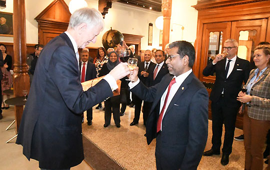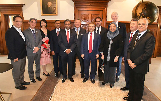 At the audience with Her Majesty the Queen, Ambassador Ganegama Arachchi conveyed warm greetings from President Maithripala Sirisena to Her Majesty, and thanked her for sending the message condemning the Easter Sunday terrorist attacks and expressing sympathies to the victims. Her Majesty the Queen was informed that Sri Lanka tourism industry is now in the course of rebounding with increased tourist arrivals in the country. Her Majesty the Queen expressed her keen interest in witnessing close engagements between Denmark and Sri Lanka. Ambassador Ganegama Arachchi met with the State Secretary for Foreign Policy Jesper Møller and Head of Asia Division of the Danish Foreign Ministry Thomas Lehmann and briefed them about the current political and economic developments in the country. He also proposed to consider signing a Memorandum of Understanding on Bilateral Political Consultations. Both sides identified that there are specific opportunities for Danish private sector to undertake projects in the fields of port developments, energy efficiency management, water purification, and food processing. During the visit, Ambassador Ganegama Arachchi met the CEO of the ICT Chamber of Denmark and discussed the possibilities of exploring business opportunities and exchanging delegations for promoting ICT sectors in Denmark and Sri Lanka. At the Asia House, Copenhagen, Honorary Consul Peter Grøndahl hosted a reception in honour of Ambassador Ganegama Arachchi. This was attended by the Asian Ambassadors, diplomats and the members of the business community. In his speech, Ambassador Ganegama Arachchi highlighted the importance and the benefits of enhanced bilateral relations. The Ambassador visited the Copenhagen Buddhist Vihara to meet the Chief Incumbent Marathugoda Uparathana Thero and the members of the Sri Lankan community in Denmark. At this meeting, the Ambassador closely interacted with the community members and discussed their concerns related to Consular matters. The Minister of the Embassy Harsha Vithanaarachchi and Honorary Consul General for Sri Lanka in Denmark Peter Grøndahl accompanied the Ambassador to the meetings.