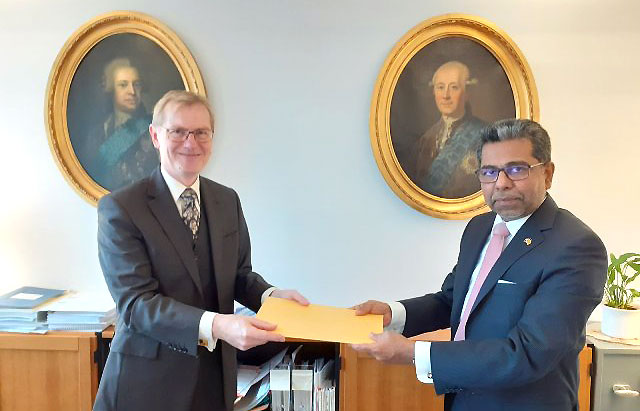 Ambassador Sudantha Ganegama Arachchi presented Letters of Credence on 25 October 2019 to the Queen of the Kingdom of Denmark Her Majesty Margrethe II at the Amalienborg Palace, as the Ambassador of Sri Lanka to the Kingdom of Denmark with residence in Sweden.