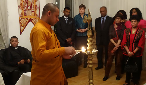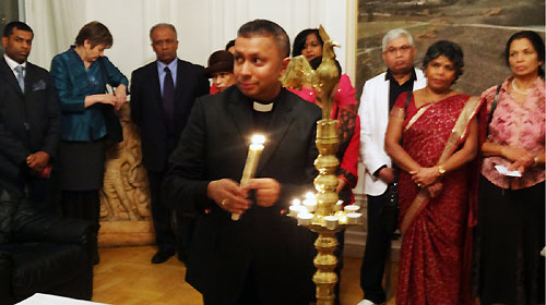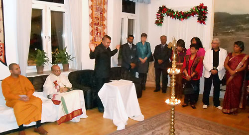 On 20th December 2012, the Embassy of Sri Lanka in Stockholm celebrated Christmas for the first time in the Embassy's history with the participation of Sri Lankans living in Sweden and special guests. The event was held at the Embassy premises. Religious leaders representing main religions were present at the event. The Embassy was adorned with Christmas decorations in an impressive manner. The event commenced with the singing of the national anthems of the two countries followed by the lighting of the traditional oil lamp by the participants.