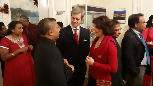 Vicar of the Royal Court Michael Bjerkhagen then made a Christmas prayer and read selected verses from the Bible. Venerable Buddhist monk Matale Dhammakanda of Stockholm Buddhist Vihara and hindu priest Mohan from Stockholm Ganesh Temple also graced the event with their presence. One of the guests expressed his appreciation of the event organised by the Embassy with the hope of bringing Sri Lankans together and working with the Sri Lankan community closely. In a vote of thanks appreciations were extended to all who contributed in every way to make this event a success and the gathering was invited to taste the Sri Lankan delicacies and Swedish Christmas treats.