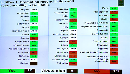 With 13 countries opposing the resolution, 8 countries abstaining, and 1 country absenting itself, 22 out of a total of 47 members of the Human Rights Council, refrained from supporting the U.S. sponsored resolution on Sri Lanka which was taken up for debate and vote at the 22nd Session of the UNHRC in Geneva on Thursday (21 March 2013). This cross- regional group included Congo, Ecuador, Indonesia, Kuwait, Maldives, Mauritania, Pakistan, Philippines, Qatar, Thailand, UAE, Uganda, Venezuela (which opposed); and Angola, Botswana, Burkina Faso, Ethiopia, Japan, Kazakhstan, Kenya and Malaysia (which abstained); and Gabon (which absented itself). The resolution was supported by 25 countries, which included the US, 13 EU and EU aspirant member countries which vote as a block (Austria, Czech Rep., Estonia, Germany, Ireland, Italy, Montenegro, Poland, Spain, Rep. Moldova, Romania, Switzerland), as well as Argentina, Benin, Brazil, Chile, Costa Rica, Guatemala, India, Ivory Coast, Libya Peru, Republic of Korea, and Sierra Leone. In March 2012 when the Sri Lanka resolution was taken up, 23 countries refrained from supporting the resolution - 15 opposing and 8 abstaining, while 24 countries supported it. comments powered by Disqus |