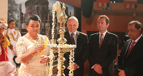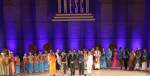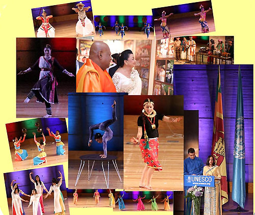 First Lady Madam Shiranthi Wickramasinghe Rajapaksa inaugurated a series of events organized by the Permanent Delegation of Sri Lanka to UNESCO and the Embassy of Sri Lanka in France to commemorate Vesak at UNESCO in Paris under the theme of ‘Interfaith and Intercultural Awareness towards Peace’. Among the distinguished guests present were Mr Lalith Weeratunga, Secretary to the President, Ven. Prof. Kumburugamuwe Vajira Thero, Chancellor of the University of Sabaragamuwa, His Eminence Malcolm Cardinal Ranjith, Archbishop of Colombo, Rev. Laksumikantham I. J. Kurukkal, Al Haj De Ash-Shaikk As-Seyed Hassan Moulana Al-Quadiri, Chief Priest of the Colombo Dewatagaha Masjid. Ven. Dr. Bodagama Chandima Thero, International Affairs Advisor to the President and a large number of Buddhist priests from around the world also participated in the events. Gracing the Inaugural Session as Chief Guest on 21st May 2014, Madam Rajapaksa delivered a Special Address in which she highlighted the significance of Vesak and its recognition throughout the UN system, culminating in its declaration as an International Day of Observance. She emphasized the importance of education both at home and school from early childhood in increasing awareness of faiths and cultures of each other. United Nations Secretary General Ban Ki Moon dispatching a special message on the occasion of the Vesak commemorations at UNESCO thanked Sri Lanka for making the gathering possible and stated that ‘Vesak Day is a celebration for Buddhists worldwide and an opportunity for the international community to benefit from their rich traditions.’ Issuing a Message of Greeting from Colombo, President Mahinda Rajapaksa noted the importance of the triple festival of Buddhism and the impact of Buddhist teachings of understanding and tolerance. He stated that ‘the teachings of unity bring people together in the greater pursuit of knowledge and understanding’. His Eminence Malcolm Cardinal Ranjith referred to the long standing amity among the peoples of different faith in Sri Lanka and stated that he was delighted to be the Cardinal in a country where 74 percent of the population is Buddhist. He said that both secularism and fundamentalism “demean the supreme value of religious heroism which can help humanity to achieve true nobility, freedom from self and unity.” Ambassador Karunaratne Hangawatte, Permanent Delegate of Sri Lanka to UNESCO in his welcome address noted that the presence of leading personalities of the four main religions in Sri Lanka at the celebration of Vesak on the main stage at UNESCO, the bedrock of peace in the United Nations system reflects the true character of peaceful co-existence in Sri Lankan culture. Special Addresses were delivered by Ambassador Mohamed S. Amr, Chairperson of the Executive Board of UNESCO as well as Mr Eric Falt, Assistant Director General of UNESCO and Ambassador Katalin Bogyay, former President of the General Conference of UNESCO. The events organized over the two days included Special Lectures, a session on Meditation, three panel discussions, an International Vesak Concert and a photographic exhibition on ‘Buddhism and Sri Lankan Culture’. While alms were offered to Buddhist monks, lunch was served to all participants on both days at ‘dansalas’ held at UNESCO.