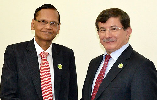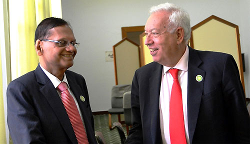 Professor G.L. Peiris, Minister of External Affairs, held bilateral discussions with Mr. Ahmet Davutoglu, Minister of Foreign Affairs of Turkey, on Wednesday on the sidelines of the 17thMinisterial Meeting of the Non-Aligned Movement in Algiers. Minister Davutoglu paid tribute to the resilience Sri Lanka had shown in its recovery from the tsunami calamity, soon after which he had visited the country, and also in respect of the impressive progress which Sri Lanka had made after the eradication of terrorism. With direct airline connectivity now established between Colombo and Istanbul, Turkey’s Foreign Minister had no doubt about the potential for further expansion of trade and tourism. He expressed interest in sending young diplomats from Turkey for exposure to the programmes of training offered in Sri Lanka. The two Ministers noted a substantial overlap in the challenges confronting their countries and agreed on the need for closer political collaboration. They also decided to strengthen the Joint Economic Commission, chaired by the Minister of Commerce of Sri Lanka and the Minister of Finance of Turkey. They discussed their common experience in expanding co-operation with countries in Africa and Latin America as a central feature of their current foreign policy initiatives. External Affairs Minister Professor G.L. Peiris had bilateral discussions with Mr. Manuel Garcia Marfil, Minister of Foreign Affairs Spain, on the sidelines of the 17thMinisterial Meeting of the Non-Aligned Movement in Algiers on Wednesday. Minister Peiris briefed his Spanish counterpart on Sri Lanka's current situation, with particular reference to issues connected with development and reconciliation. Trade, investment and tourism were other major topics, which the Ministers discussed at their meeting. Minister Marfil informed Prof. Pieris about plans by the Government of Spain to open an Embassy in Colombo in the near future. The Foreign Minister of Spain said that he considered this a timely development, having regard to the significantly enhanced ties between the two countries in a variety of sectors. comments powered by Disqus |