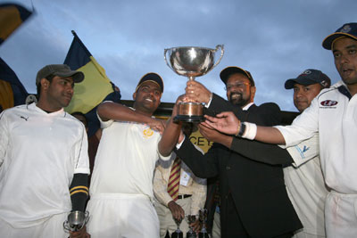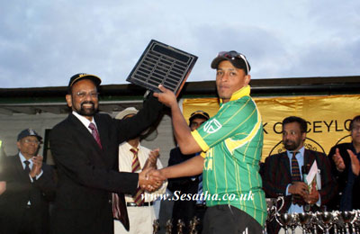 One more thing that will go down in FOC history on its 21st birthday would be two teams scoring the same number runs for equal number of wickets with the same number of extras, resulting in a bowl out! Dhanushka Perera (Captain), Gayan Maduranga, Malinda Thotiwilage, Sineth Withanage, Kasun Ranabahu, Samira Perera, Dulith Weeraratne, Nirosha Wijenayake, Gihan Premachandra and Shanaka Herath played for the Royal OBA's historic winning team. The Chief Guest was His Excellency Justice Nihal Jayasinghe, High Commissioner for Sri Lanka in the UK. Among other eminent guests were the Chairman of Bank of Ceylon, Dr. Gamini Wickramasinghe, The Chief Executive Officer of SM Call Dialog, Mr Sam Seinthan, the Country Manager UK and Ireland for SriLankan Air Lines, Mr. Chanaka Olagama, and Councillor Martin Prescott, London Borough of Enfield , Winch more Hill Ward . Along with Bank of Ceylon, as the main sponsor, SM Call Dialog and Sri Lankan Airlines co-sponsored the event. The FOC's survival and success story over this long journey of twenty one years is nothing but due to their upholding its very basic principles, collective responsibility and mutual respect for each other which they have managed to exhibit to the world as an excellent winning formula . On its 21st anniversary, the Joint Presidents Brian Ratnayake and Jayantha Edirappuli together with the Festival of Cricket Executive Committee 2009 could be congratulated for continuing and upholding their commitment and dedication in making this year's Festival Of Cricket even more entertaining.