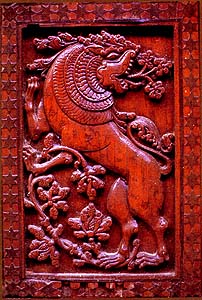 Wood panel from an old door ... Lion has always been revered in Sri Lankan lore. After all, the major race in Sri Lanka, the Sinhalese , are supposed to be descendants of a lion. (Sinha, lion and le', blood in Sinhala, the language of the majority of the people). The lion is also prominently displayed on the flag of Sri Lanka.