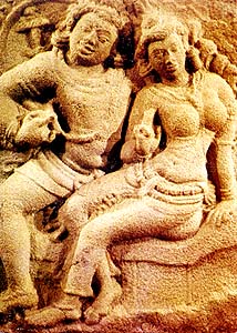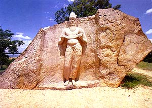 Anuradhapura, built in the 3rd century B.C. is noted for its rock carvings. The best known among these is the "Lovers". Many a poet and song writer has taken inspiration from this carving to write their masterpieces. It is believed that the carving may represent Saliya, and the low-caste maiden whom he loved. Saliya was the son of the great king Dutugamunu.