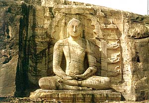 Polonnaruwa, rank among the finest in Sri Lanka. The statues were carved out in 12th century A.D., and has weathered the elements remarkably un-touched. The statue shown here is that of the seated Lord Buddha.