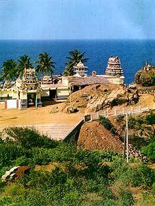 is a natural deep-water harbor, on the north-east coast of Sri Lanka. On the east side of the town of Trincomalee, on a cliff known as Swami Rock stands one of the oldest Kovils (Hindu temple) in Sri Lanka. The present day Tirukonesvaram Kovil was rebuilt on the site of the Dakshana Kailayam (temple of 100 pillars) - that was destroyed by the Portugese in the 17th century. The restoration work was completed in the 1960's, and it is a "must see" site, for the visitors to Trincomalee. Friday evening Puja (offerings) services are specially colorful.