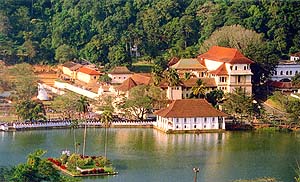 Kandy, the anglicization of the Sinhala word kande, meaning "hill" is about 1600 feet (488 meters) above sea level and is the favorite city of travelers from all over the world. The sacred tooth of Lord Buddha is preserved here in it's own temple "Dalada Maligawa" ( The temple of the Tooth ) and a replica of this holy relic is paraded around the city, on the back of the chief elephant "Raja", for two weeks every year during the month of August. Esala Perahera or the parade during the month of Esala is a spectacle not to be missed, with hundreds of brightly decorated elephants, dancers and singers from all walks of life, who turn this normally quiet small town to into one enormous festival, during those two weeks.