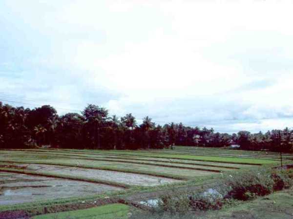 Once the seedlings are well established fertilizer is applied, and as weeds begin to grow, children will go through the paddy pulling them up and burying them beneath the mud, where they also act as fertilizer as they decay. Time to mature, which is generally three to four months, depends on the variety of rice being planted. Harvesting is always planned before the monsoons start, which is very predictable in the tropics, and therefore the varieties that take longer to mature are planted early. Harvesting rice is considered man's work, and it is a time of joy. A sickle is used to cut the dry, mature rice plants at ground level, and bundled for transporting to the threshing field ("kamatha").