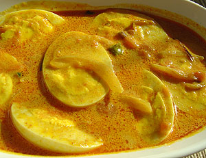 Then add the milk and curry powder and when it starts to bubble add the Eggs,