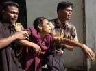 Dec 28 (GI) Niluka Kumudini (C), the widow of slain soldier Dhana Priyawansa, is carried by relatives as she breaks down upon seeing her husbands remains arrive at a hospital morgue in Colombo, after he was killed 27 December, in a mine attack in Jaffna. more..