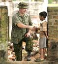 Jan 14 (Yahoo) Master Cpl. Lance Hooper laughs as he talks with a young boy in Kalmunai, Sri Lanka. Canadian combat engineers were looking at tasks where their equipment could be used.