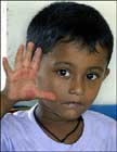 Jan 14 (Yahoo) Four year old Sri Lankan tsunami survivor A. Liyanage, shows his red crayon stained hands during a drawing class in the Kovilla Godilla Temple on the outskirts of Galle.