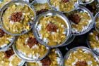 Jan 14 (PBP) Lunchtime at a refugee camp, plates of rice, fish curry and dahl await refugees. Each plate goes to one family, who in Muslim fashion eat together from one plate.