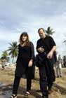 Jan 21 (GI) Norwegian Minister For Development Helide Johnson (L) and Norwegian Foreign Minister Jan Petersen (R) walk on a devastated ground, during a visit to Hambantota, 21 January 2005.
