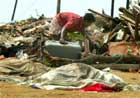 Jan 3 (Yahoo) A Sri Lankan tsunami survivor scavenges through debris and rubbish next to covered bloated bodies downtown in the coastal town of Sri Lanka, Monday, Jan. 3. More than a week after the tsunami disaster police and medics are still pulling bodies from the rubble,