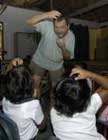 Jan 28 (GI) Frenchman Pierre Layac (C) amuses children by acting as monkey during a visit to the Green Hope School in Katukohlia, some 110 km south of Colombo, 27 January 2005.