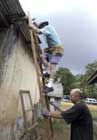 Jan 29 (GI) Tourists John Towers (L) and Barry Bryan repair a roof while building shelters for displaced Sri Lankans in Kalutara,some 45kms south of Colombo,